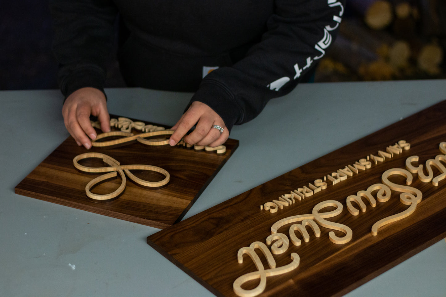 From custom wall art to one-of-a-kind decor, I create pieces that are personal, meaningful, and made just for you. Got an idea in mind? A favorite phrase, shape, or vibe? Let’s talk—I love helping people create pieces they’ll treasure.